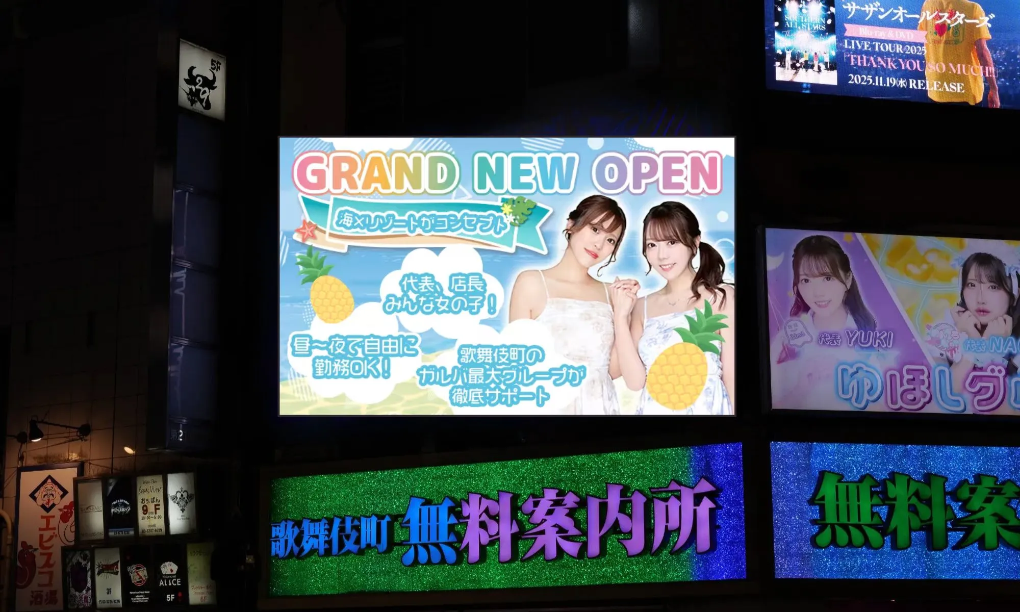 多くの媒体が深夜に消灯する中、当ビジョンは24時間休むことなく放映を続けます。これは「不夜城」と呼ばれる歌舞伎町において、圧倒的なアドバンテージとなります。日中の観光客やビジネス層はもちろん、深夜から早朝にかけて活動する飲食店利用者やインバウンド層など、ターゲットのライフスタイルに合わせた全時間帯での露出が可能です。街の風景の一部として溶け込みながら、24時間絶え間なくメッセージを届け続けます。