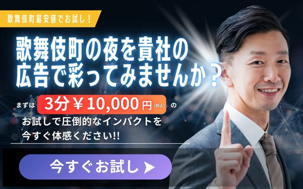 日本最大の歓楽街、新宿歌舞伎町。1日150万人以上が利用するこの街で、最もダイレクトにターゲットへ訴求できるメディア、それがデジタルサイネージ(大型ビジョン)広告です。